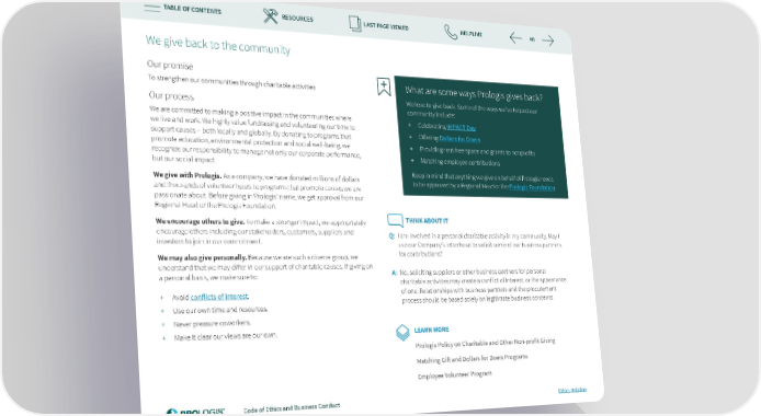 TABLE OF CONTENTS RESOURCES LAST PAGE VIEWED HELPLINE 40 We give back to the community Our promise To strengthen our communities through charitable activities What are some ways Prologis gives back? Our process We love to give back. Some of the ways we’ve helped our community include: We are committed to making a positive impact in the communities where + Celebrating IMPACT Day we live and work. We highly value fundraising and volunteering our time to support causes – both locally and globally. By donating to programs that + O昀昀ering Dollars for Doers promote education, environmental protection and social well-being, we + Providing rent-free space and grants to nonpro昀椀ts recognize our responsibility to manage not only our corporate performance, + Matching employee contributions but our social impact. We give with Prologis. As a company, we have donated millions of dollars Keep in mind that anything we give on behalf of Prologis needs and thousands of volunteer hours to programs that promote causes we are to be approved by a Regional Head or the Prologis Foundation. passionate about. Before giving in Prologis’ name, we get approval from our Regional Head or the Prologis Foundation. We encourage others to give. To make a stronger impact, we appropriately THINK ABOUT IT encourage others including our stakeholders, customers, suppliers and Q: I am involved in a personal charitable activity in my community. May I investors to join in our commitment. use our Company’s letterhead to solicit some of our business partners We may also give personally. Because we are such a diverse group, we for contributions? understand that we may di昀昀er in our support of charitable causes. If giving on A: No, soliciting suppliers or other business partners for personal a personal basis, we make sure to: charitable activities may create a con昀氀ict of interest, or the appearance + Avoid con昀氀icts of interest. of one. Relationships with business partners and the procurement + Use our own time and resources. process should be based solely on legitimate business concerns. + Never pressure coworkers. + Make it clear our views are our own. LEARN MORE Prologis Policy on Charitable and Other Non-pro昀椀t Giving Matching Gi昀琀 and Dollars for Doers Programs Employee Volunteer Program Code of Ethics and Business Conduct Ethics Helpline