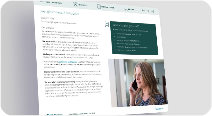 TABLE OF CONTENTS RESOURCES LAST PAGE VIEWED HELPLINE 31 We 昀椀ght crime and corruption Our promise What is “anything of value”? To win the 昀椀ght against crime and corruption Our process It really can mean “anything.” Some examples include: + Cash or cash equivalents like gi昀琀 cards We believe that the quality of our o昀昀erings and services, not illegal business practices, should bring us success. That’s why we don’t tolerate any acts of + Special favors corruption, bribery or money laundering. + Inappropriate gi昀琀s or entertainment We never bribe. Although the laws on bribery and corruption can be + Discounts unavailable to the public complicated, doing the right thing is simple: We don’t bribe. That means + Charitable donations or political contributions we never o昀昀er or accept anything of value to win business, gain an unfair + Payment of travel expenses advantage or in昀氀uence a business decision. We keep accurate records. Of course, it’s important to never bribe—but it’s also important to avoid anything that even looks like a bribe. We make sure that our books and records accurately re昀氀ect our business so that we can easily explain the appropriate reason something was given and received. We work with those who share our Values. We understand that we can be held responsible for the things our business partners do. That’s why we choose them carefully, then watch them closely. We stay alert to money laundering. Money laundering happens when funds are generated through criminal acts, like drug tra昀昀icking or terrorist activities, and then hidden (or “laundered”) by being run through legitimate businesses. It’s a way for criminals to disguise the pro昀椀ts of their criminal conduct. We stay alert for this activity and work to keep these funds from entering the Company. Code of Ethics and Business Conduct Ethics Helpline